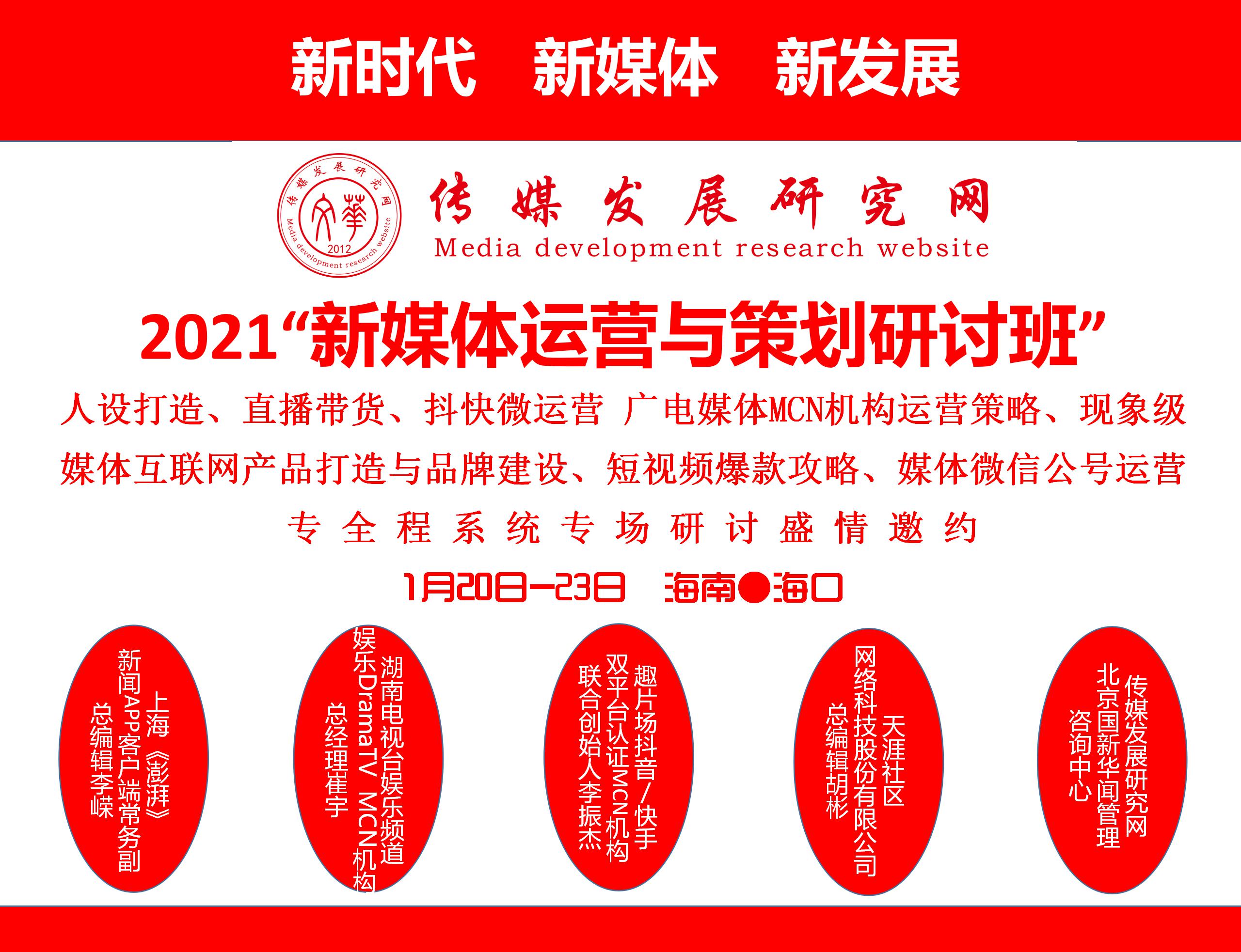 最新最落地的新媒體運營(yíng)策劃實(shí)操干貨,2021.1.20-23日 ???新媒體運營(yíng)與策劃研討班,開(kāi)年新課,歡迎踴躍報名參加!![]()